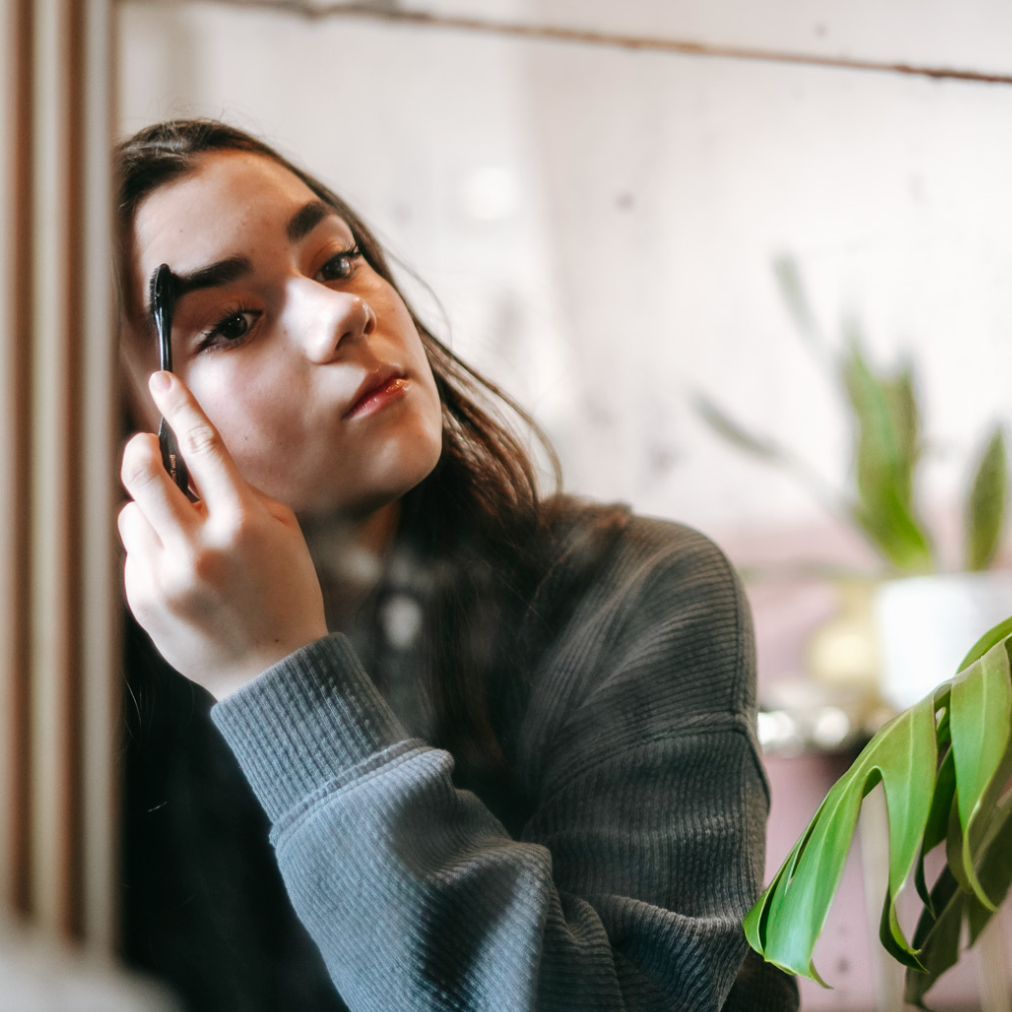 Before applying Better Brow Powder, use the Brow Taming Brush to soften and manage brow hair. For Best results use the Brow Taming Spray for an all day natural feeling hold.